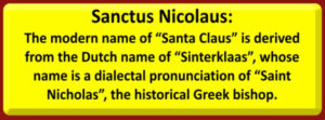 Over time, stories of my life and my giving spread throughout the world. Gradually, my name changed from language to language, and traditions grew around my story. Eventually, people came to know me as Santa Claus.